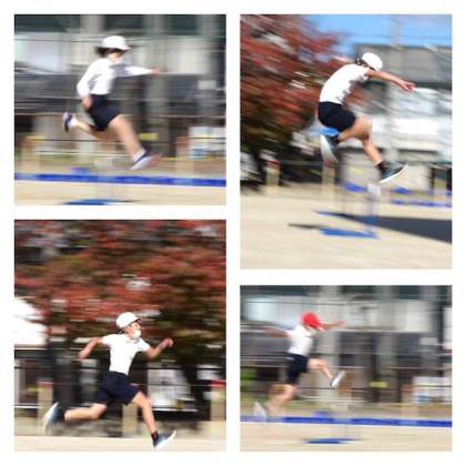 5年生は、ハードル走に慣れて来たので、今日はハードルの間隔を変えて複数のコースを設けました。