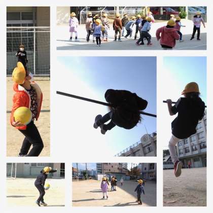 その後、高学年の子どもたちが出てきて、運動場はますます賑やかに。