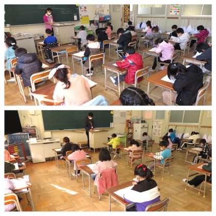 1・2年生は、今日・明日の二日間、標準学力調査を実施します。今日は国語を実施しました。写真は1年生の様子です。とても集中して取り組んでいました。