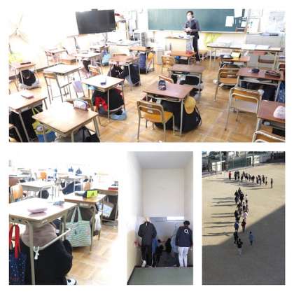 昨日1月17日は、阪神淡路大震災が発生した日です。その日に合わせ、本校では地震の避難訓練を予定していましたが、新型コロナウイルスの感染が拡大していることから、各学年に分かれて実施することにしました。6年生は、今日、避難訓練を行いました。