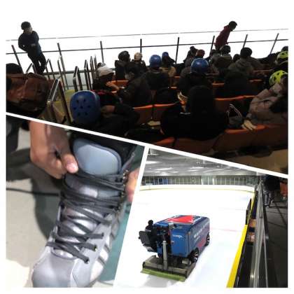 スタッフの方にスケート靴の履き方を教わり、いよいよ滑走です。