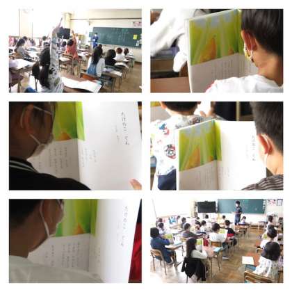 2年生は、国語の時間に新出漢字の学習と詩の朗読をしていました。今日、学習した新出漢字は「紙」です。子どもたちは、「紙」という字を使った言葉をたくさん発表していました。