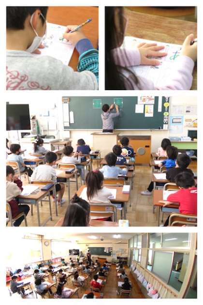 1年生は、ひらがなの学習をスタートしています。ひらがなの学習は五十音順ではなく、「つ」や「く」など画数が少ない文字などからスタートします。今日は、「あ」の学習をしましたが、「あ」は注意するポイントが多く、難易度の高いひらがなです。子どもたちは、文字の形に気をつけながら、丁寧に練習に取り組んでいました。