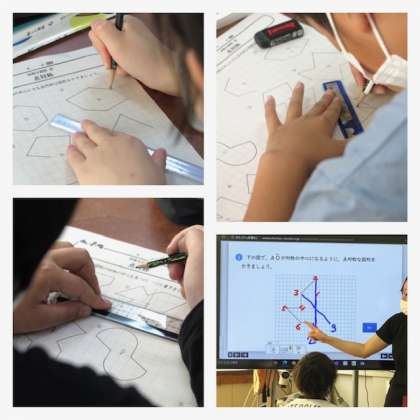 6年生は、算数の時間に「点対称な図形」について学習しました。点対称な図形をかく練習をしていましたが、線対称と比べるとイメージしにくいようでした。点対称について学んで意味を理解しても、かけるかどうかはその後の演習にかかっています。学校でもたくさんの演習を積んでいますが、ぜひご家庭でもお子さんが正しく作図できているかご確認いただき、書き方が分からずに困っているようであれば教員に尋ねるようにお声がけをお願いします。