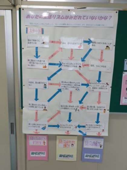 「いいえ」の選択肢を辿りながら、規則正しい生活を送ることができるかを調べるための掲示です。