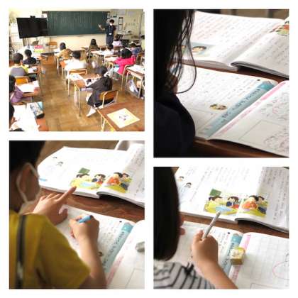 2年生は、道徳の学習で「本がかりさん がんばっているね」という教材について学習しました。道徳の学習では、教材文を読んで友達と考えを交流し、そのうえで自分の考えを整理して、ノートに書くという流れで進めています。