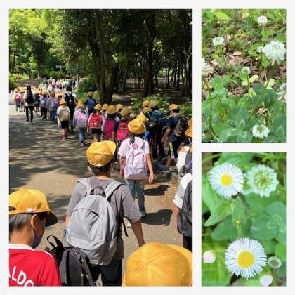 楽しかった遠足も、これより帰路に着きます。新緑や草花がきれいな服部緑地公園をあとにします。名残惜しいです・・・
