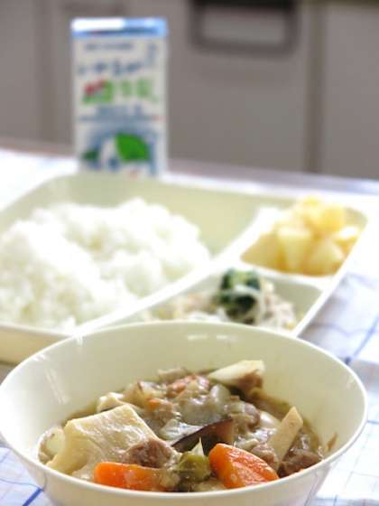 今日の献立は【八宝菜・チンゲンサイともやしのしょうがあえ・パインアップル(カット缶)・ごはん・牛乳】です。八宝菜は、野菜をたっぷり摂ることができます。野菜に苦手意識を持つ子も、食べやすい献立ですね。