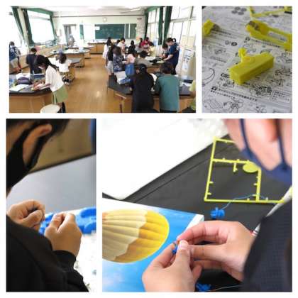 4年生は、理科の学習で「電気のはたらき」について学習しています。今日は学習に使うキットの作成をしていました。この教材では、電池・スイッチ・豆電球を使って、電流が流れるかどうかを調べたり、回路を組んでモーターを回したりします。キットはプラモデル感覚で作ることができるので、子どもたちも楽しみながら製作にあたっています。