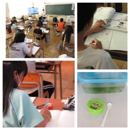 理科は、メダカの観察をしています。教室でも飼っており、今、卵が孵化して小さなメダカの赤ちゃんが産まれてきています。子どもたちが熱心に育てているようです。