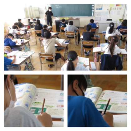 5年1組は理科、5年2組は社会科の学習をしていました。