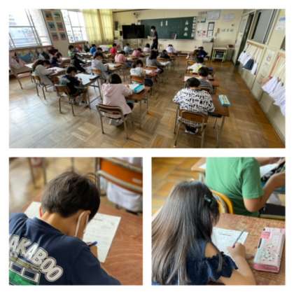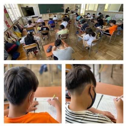 2年生は算数、4年生は漢字のプリントに組んでいました。学んだことを定着させるための、短時間学習です。どちらの教室でも、子どもたちが集中して学習に取り組んでいました。学習は、習慣づくことが大切です。定められた時間、集中して向き合うことが、子どもたちの集中力・持続力を伸ばします。