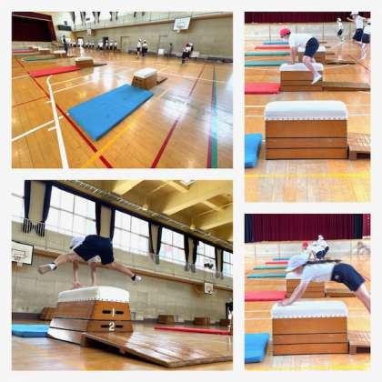 今日、取り組んだのは、開脚跳びです。基本となる跳び方ですが、他の運動につなげるために身につけたいポイントがあります。しっかり練習量を積んで、基本の動きをしっかりと身につけてもらいたいと思います。
