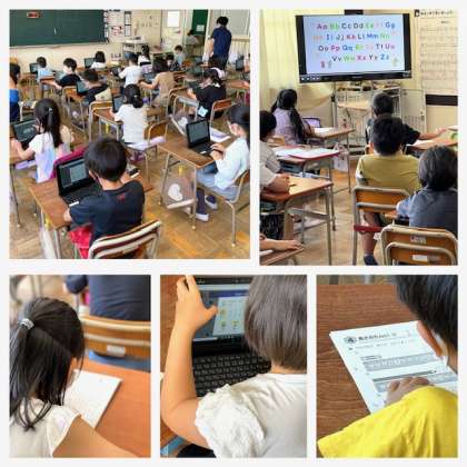 13:40〜13:55の15分間は「短時間学習」の時間です。うち2日は「英語モジュール学習」にあて、英語の歌やチャンツをして、「英語に慣れ、親しむ」時間です。