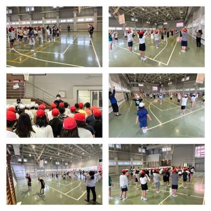 朝のつどいを体育館で行いました。ラジオ体操をして、心と体を目覚めさせます。子どもたちの時間を守ろうとする意識が高く、早めに集合することができており、感心しました。