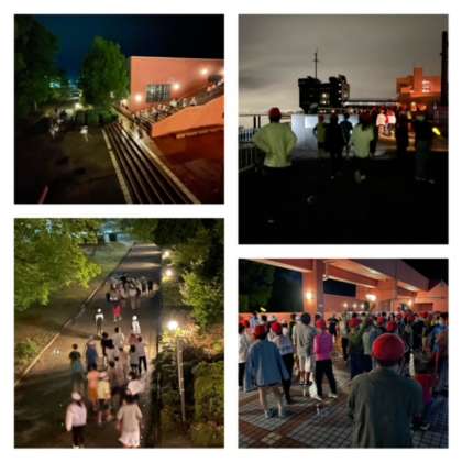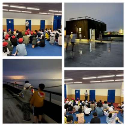 後半は、昼間活動した場所の夜の様子を見て回ります。夜風が心地よく、汗ばんだ体を適度に冷やしてくれました。夜の海は、どこか神秘的。子どもたちにとって、思い出深い夜になったと思います。