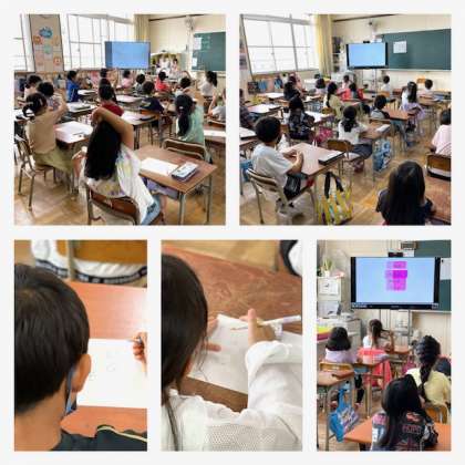 2年生は、5時間目開始前の短時間学習の時間に「英語モジュール学習」に取り組んでいました。1組は、大文字の形をよく見て書く練習をしていました。2組は、フォニックス教材を活用して、スペルを見てどのように発音すれば良いかを覚える学習をしました。