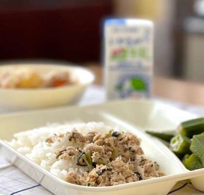 「ツナっ葉いため」は、ごはんとよく合う献立です。ツナと大根の葉を合わせており、子どもたちは野菜の存在をあまり意識することなく野菜を摂ることができています。今日の献立は、野菜をたっぷりと摂取するできるように工夫されています。