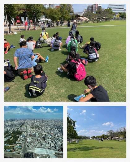展望台を後にして、「てんしば」でお弁当を食べます。これから木陰でお弁当を食べて、地下鉄で学校に帰ります。