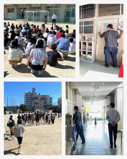 生野警察署にご協力頂き、「不審者対応訓練」を行いました。正門から不審者が入ってきた想定で、警察が駆けつけるまで安全に過ごすための訓練です。