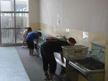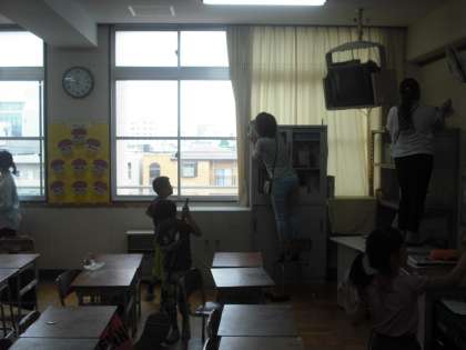 子どもたちと一緒に、普段の掃除の時間ではなかなかできないところの