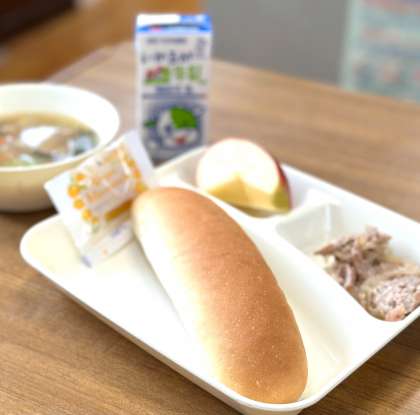 今日のパンはコッペパンでしたが、これに限らず、給食のパンはとてもふかふかでおいしいと評判です。ふかふか食感の秘密は、「朝焼き」だから、とのこと。週2回のパンも楽しみです。