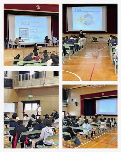 子どもたちの発表の後、今年はロート製薬さんにご協力いただき、アイケアプログラムをベースにした学習や目薬の差し方などについてご指導いただきました。
