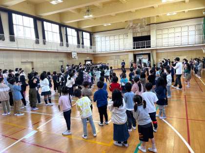今日は、1年生が2〜6年生と初めて顔を合わせる「対面式」がありました。2年生は、1年生を迎えて少しお兄さん、お姉さんになったことが、とても嬉しそうな様子でした。お兄さん、お姉さんの歓迎の言葉を聞き、1年生の子どもたちもとても嬉しそうな様子。まだ入学して間もない1年生ですが、「よろしくお願いします」のご挨拶を元気よくすることができました。