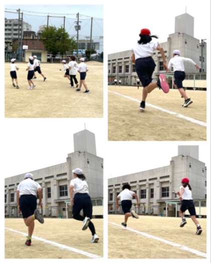 6年生は、スポーツテストに向けて「短距離走」の学習に取り組んでいます。最初は先生も加わって「ふえおに」で楽しみながら走力を鍛えます。「腕を大きく振る」、「腿を高くあげる」、「ゴールの先を見て走る」と言ったアドバイスをもとに、効率良い走りのフォームを身につける練習をしました。
