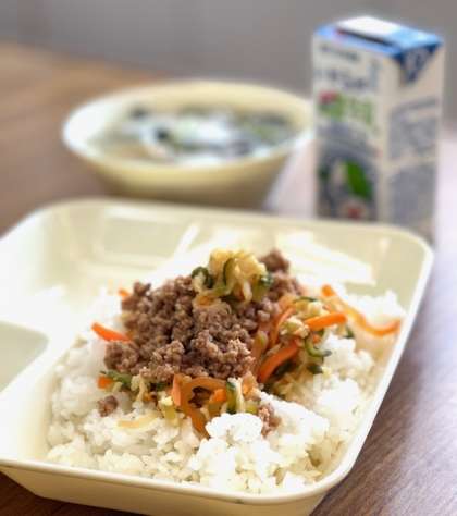 今日の献立は【ビビンバ・トック・牛乳】です。