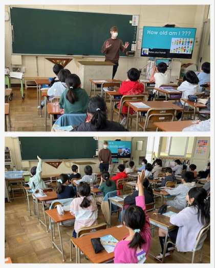 4年生は、C-NETのマイケル先生をお迎えして、英語の学習をしました。まずはマイケル先生の自己紹介を聞きながら、子どもたちも同じ話題で回答します。ネイティブの英語を聞き、正しい発音を耳にすることで、子どもたちの英語を聞き取る力が飛躍的に伸びます。4年生の子どもたちは、楽しみながら英語の学習に取り組んでいました。