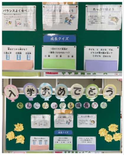 4月の保健掲示は、子どもたちの生活習慣についての内容です。食事・運動・睡眠が成長を促すことに気づくような内容になっています。一流のアスリートにインタビューした内容を見てみると、食事・睡眠について触れられていることが多いです。特に睡眠は、かなりの時間をとっていることに驚かされることもあります。