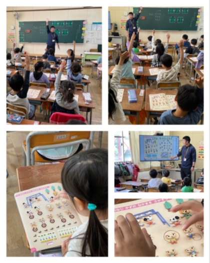 1年生は、算数の時間に「5よりも大きな数」について学習していました。教科書のイラストを見ながら、いろいろなものの数を数えました。1年生はやる気に満ち溢れていて、手の上がり方がすごいです!