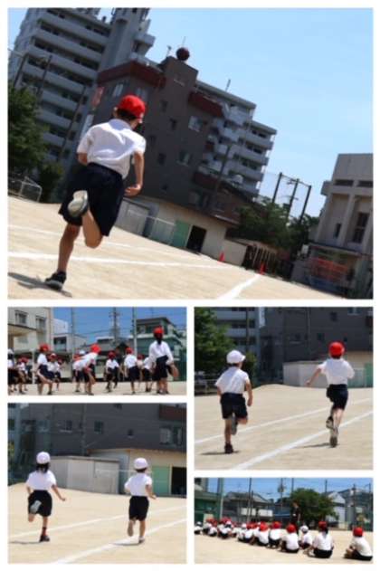 1年生は、スポーツテストの1種目「50メートル走」を測定しました。サポーターのS先生がその様子を撮影してくれました。スタートでしっかりと飛び出すことができるように、子どもたちは意識していました。思っていた以上に、腕もしっかりと振ることができていました。