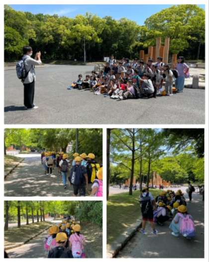 入口のモニュメント前で記念撮影をして、大型遊具がある広場に向かいます。