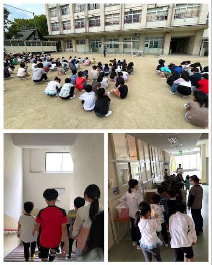 避難訓練は年に何回か行いますが、年度当初のこの時期は「火災」についての避難訓練を行います。訓練の際、子どもたちには「お は し も」というキーワードを教えています。「押さない・走らない・喋らない・戻らない」の頭文字を取ったものです。学校に限らず、どこにいる時も火災から身を守るための原則は同じです。静かで速やかな避難ができるよう、指導をしていきます。
