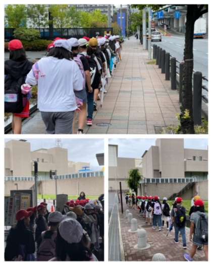 大日駅から外に出ると、雨が上がっており、傘を差さずに移動できました。庭窪浄水場に到着。案内の方が優しい笑顔で子どもたちを出迎えてくださりました。