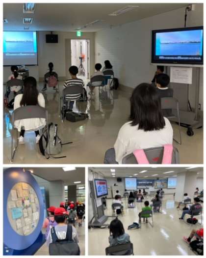浄水場のセミナールームに移動して、水ができるまでの流れを動画視聴で学習します。