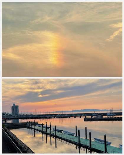 今からキャンプファイヤーです。キャンプファイヤーの場所に向かう間、夕焼けがとても綺麗でした。珍しい彩雲も現れ、子どもたちの期待も高まります。