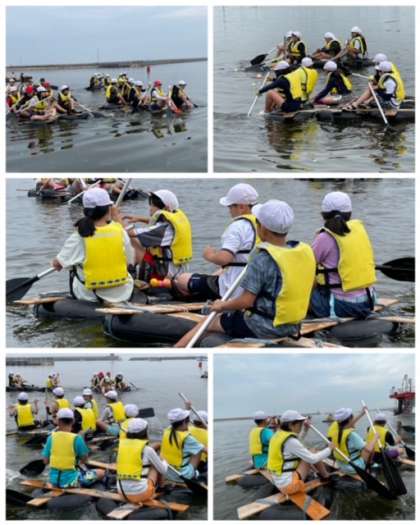 子どもたちはパドリングがとても上手で、声をかけ合って上手にいかだを進めることができていました。
