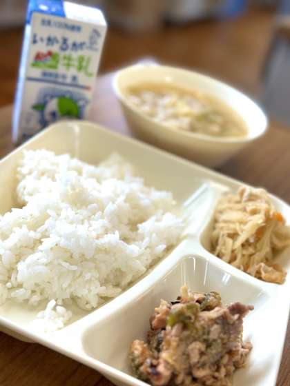 6/12の献立は【豚肉のごまみそ焼き、すまし汁、切干しだいこんのいため煮、ごはん、牛乳】です。