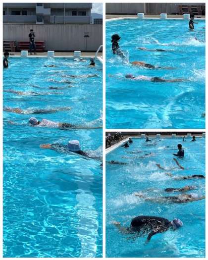 今日は2・3時間目に3・4年生、5時間目に1・2年生がプールに入りました。今日の大阪は気温が午前中で30度に達しましたが、屋外では爽やかな風が吹き、意外に過ごしやすい気候でした。