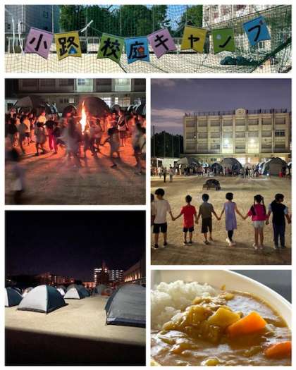 昨日より開催しているPTA主催の「校庭キャンプ」。カレー作り、きもだめし、キャンプファイヤー、水遊び、ラジオ体操など、盛りだくさんなプログラムに、子どもたちも大満足です。