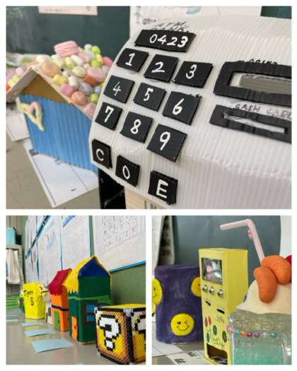 教室には、子どもたちが夏休みに作った作品がずらりと並んでいます。どれもアイデア豊かな力作揃い。