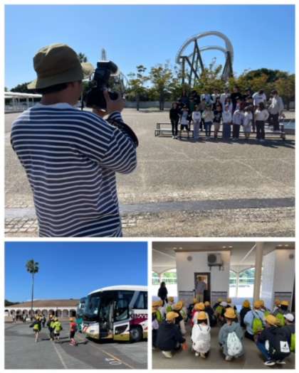 スペイン村に到着。雲ひとつない青空が広がっています。記念撮影を済ませて、今から昼食を食べます。みんなとても元気です。