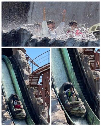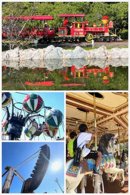 ジェットコースター系以外のアトラクションも充実しています。天気は良く、木陰は爽やか。最高のコンディションで、子どもたちも楽しく過ごしています。