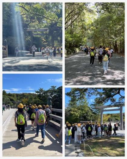 伊勢神宮に到着。記念撮影を済ませて、境内を回ります。この後はおかげ横丁に向かいます。