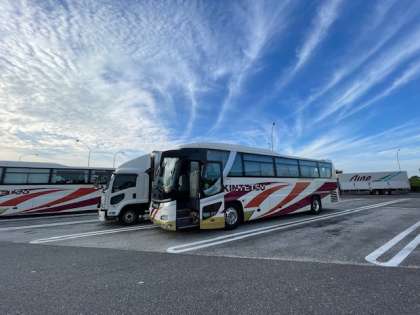 現在、天理PAでトイレ休憩中です。ここから約50分の予定です。学校到着は、17時を少し越えそうです。よろしくお願いします。