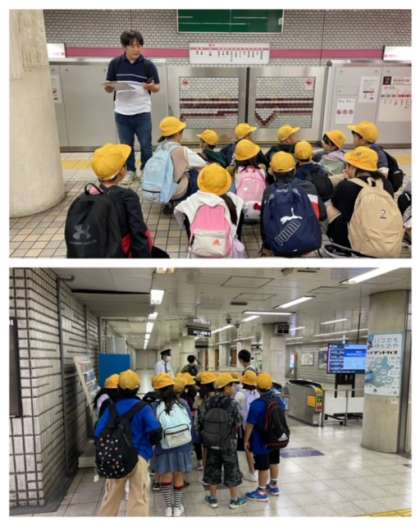 3・4年生は校外活動で「市立科学館・靱公園」に行きます。今から地下鉄に乗車します。良い天候に恵まれ、絶好の校外活動日和となりました。