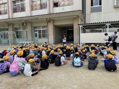 学校に到着しました。子どもたちは帰りの電車の中でもとても行儀が良く、感心しました。天候にも恵まれ、絶好の校外活動日和となりました。
